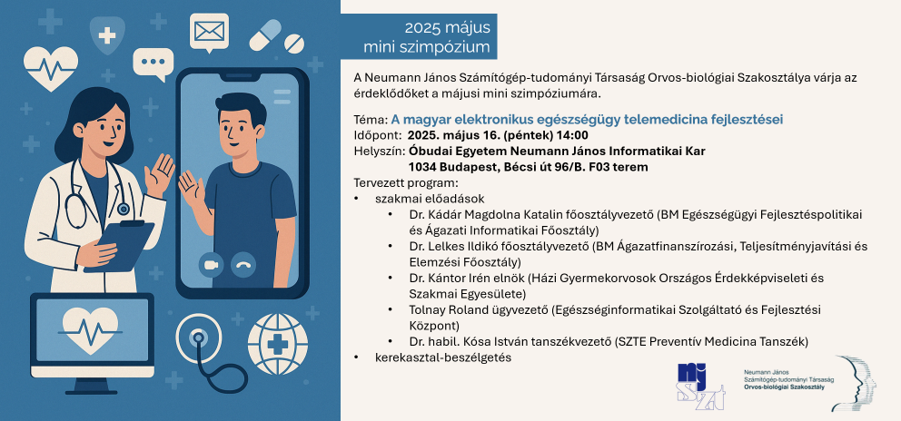 A Neumann János Számítógép-tudományi Társaság Orvos-biológiai Szakosztálya várja az érdeklődőket a májusi mini szimpóziumára.
